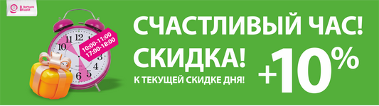 Это ваше специальное время, когда к уже действующей скидке мы дарим дополнительные 10% на выбранные товары.