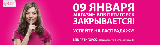 Пришло время сообщить важную и немного грустную новость: 09 января мы закрываем наш уютный магазин «ВПВ «Пятигорск».